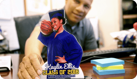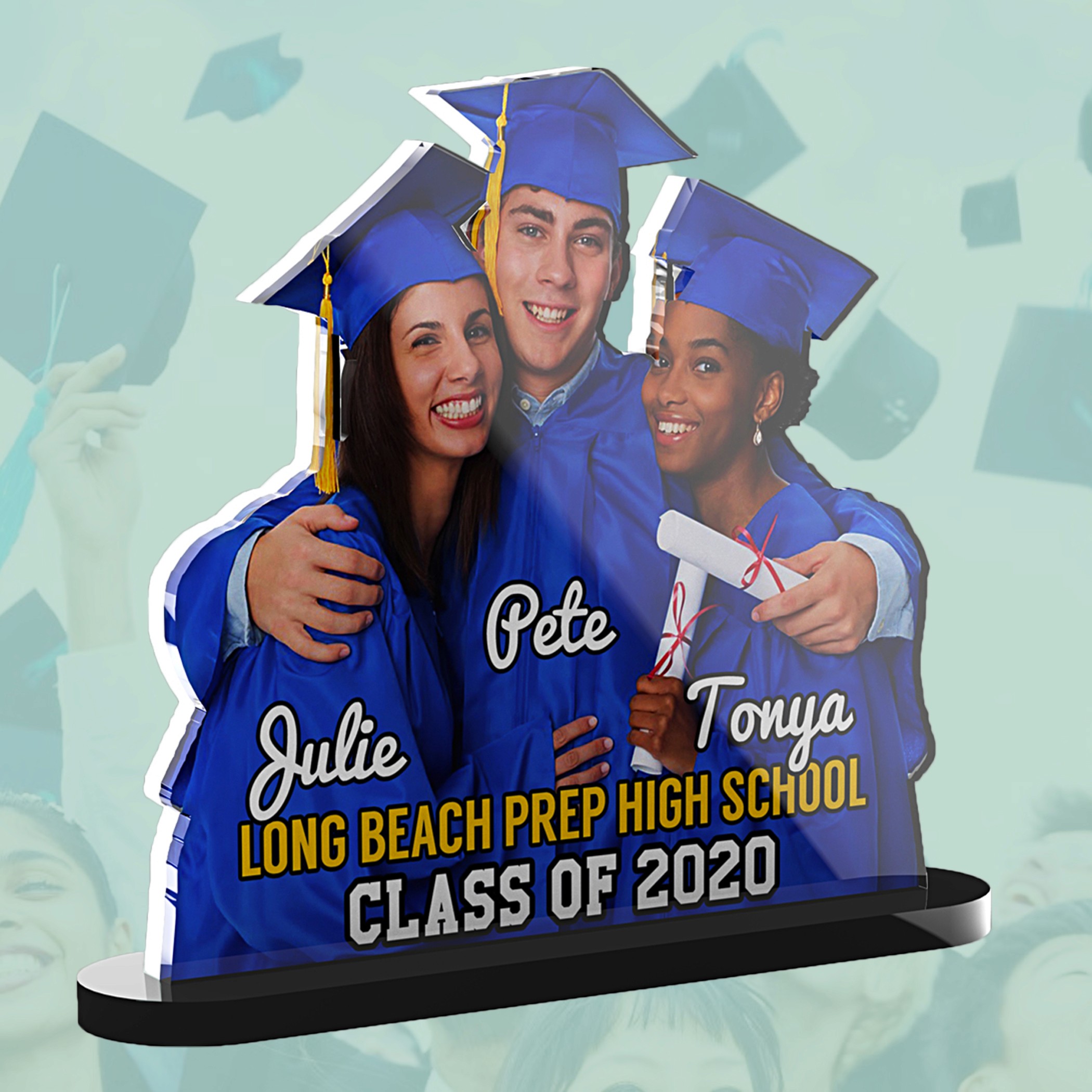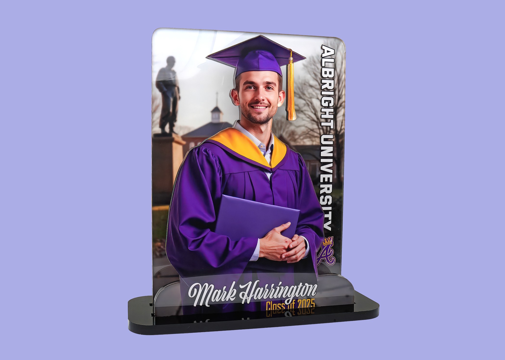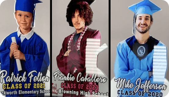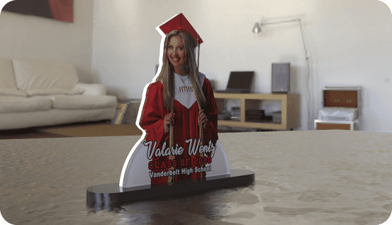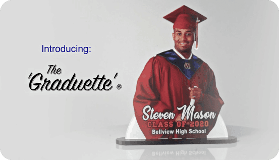 Our Graduettes® are encased in a beautiful yet resilient acrylic material creating an elegant finish and portability unlike traditional photos.